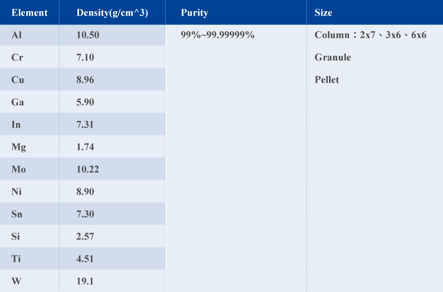 | ► | High-Purity Metal Source for Evaporation |