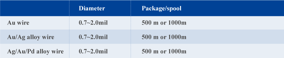 (3) Gold wire, precious metal alloy wire, and other wires, diameter from 0.7 to 2.0mil.
